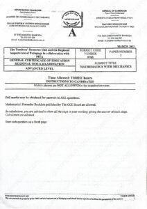 cameroon gce advanced level 2025 electrical electronics applied mechanics 3