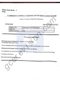 GCE 2026 South west regional mock mathematics