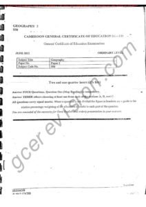cameroon gce O level June 2012 Geography 2