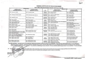 GCE 2021 timetable
