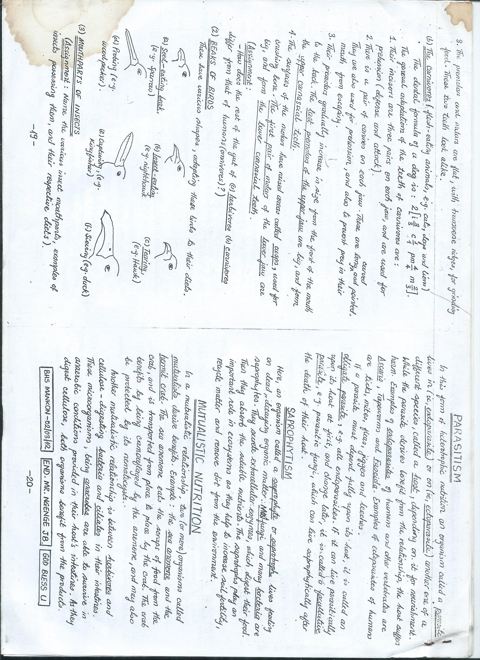HERE ARE SOME A LEVEL NOTES ON Heterotrophic nutrition A level